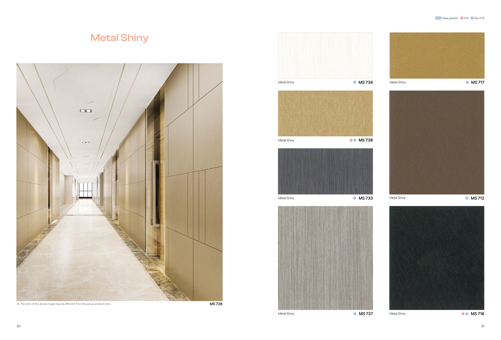 Revestimiento decorativo Metal Shiny. Producto de revestimientos. Adecuado para alto transito y proyectos comerciales. Disponible para cotizacion inmediata.